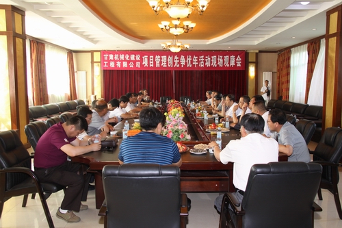 參加這次現場觀摩會的有公司在蘭領導、“項目管理創先爭優年”活動領導小組成員、公司機關職能部門負責人,在蘭的基層單位黨政主要領導、蘭外項目部的代表近40人。觀摩會由公司常務副總經理張貴民同志主持。觀摩會采取現場參觀、查看內業資料,大會介紹經驗,職能部門點評,領導講話等形式進行。