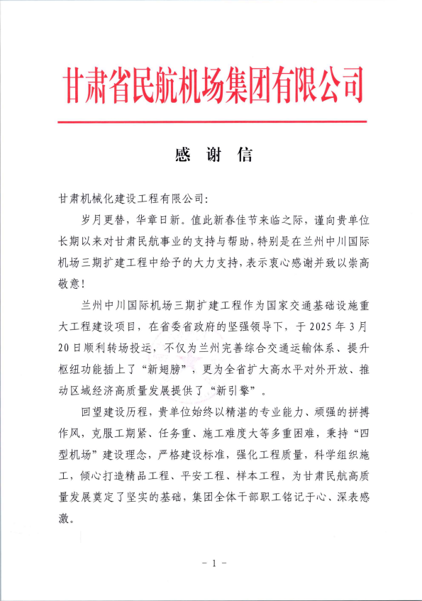 兩封感謝信,既是對項目團隊攻堅克難、實干擔當的充分肯定,更是對我司綜合實力與專業能力的高度認可。我司將以兩大機場項目為新起點,持續深化合作、精益求精,以更高標準完成各項工程任務,為民航及基礎設施建設事業再立新功。